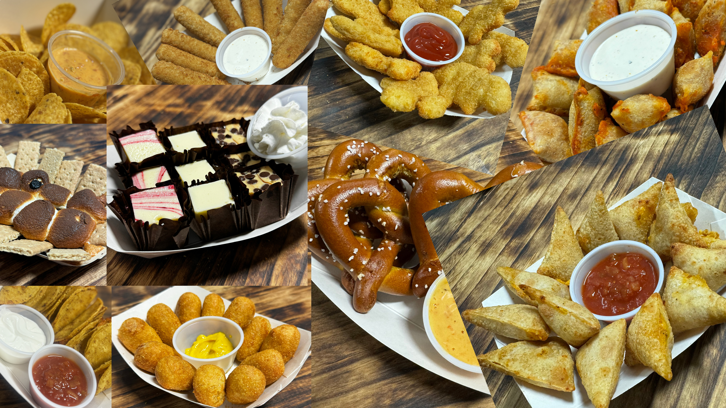 Three (3) soft pretzels topped with your choice of salt or cinnamon-sugar and honey mustard or queso for dipping.